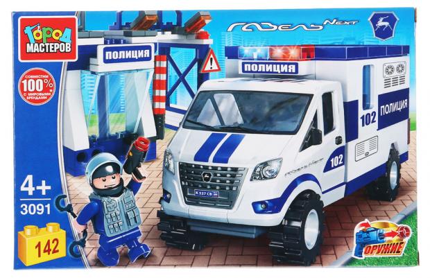 Конструктор «Город мастеров» Полицейский участок с газелью, с фигуркой, 142 деталей