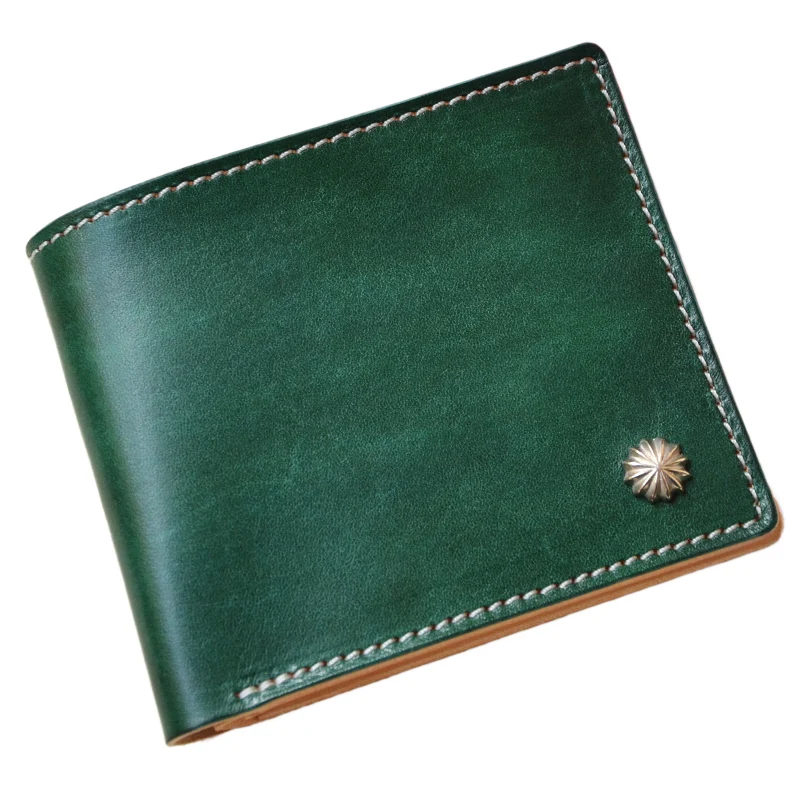 Короткие Зеленые кошельки ручной работы, кошельки для женщин и мужчин, клатч, тонкий кошелек из растительного дубления кожи, держатель для к...