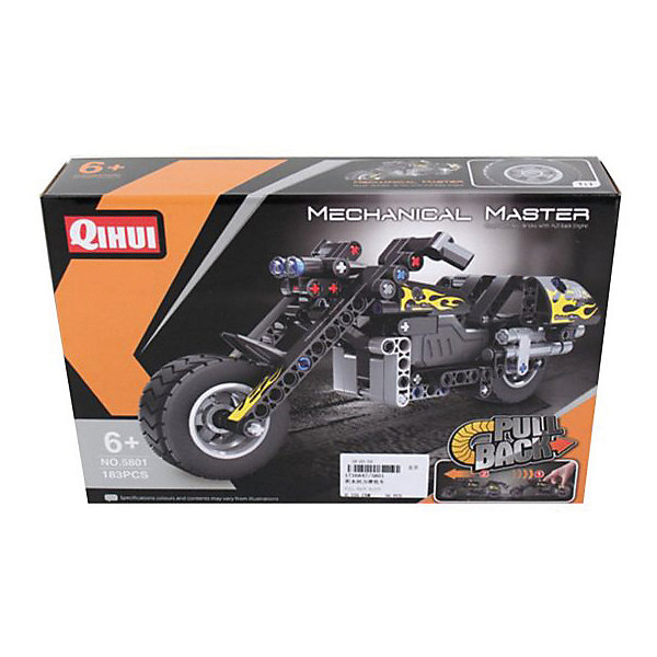 Конструктор предназначен для сборки мощного мотоцикла. В набор входят как стандартные детали, так и колёса с подкрылками, элементы руля и фары. Готовое изделие можно привести в движение и направить вперёд, установив мотоцикл на ровную поверхность и потянув игрушку назад. Конструирование развивает у детей усидчивость, мелкую моторику рук, фантазию и образное мышление. Мотоцикл в собранном виде может стать элементом сюжетно-ролевой игры.