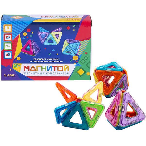 Конструктор магнитный Магнитой "8 треугольников (2 - с окном)", деталей: 8 (GL-1002), "8 треугольников (2 - с окном)"