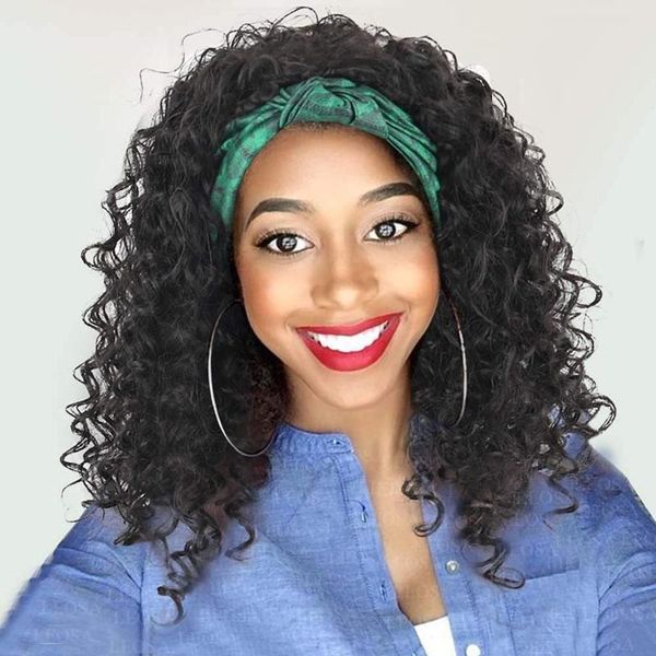 synthetic wigs short afro kinky curly headband deep wave hair headwrap black wig for women