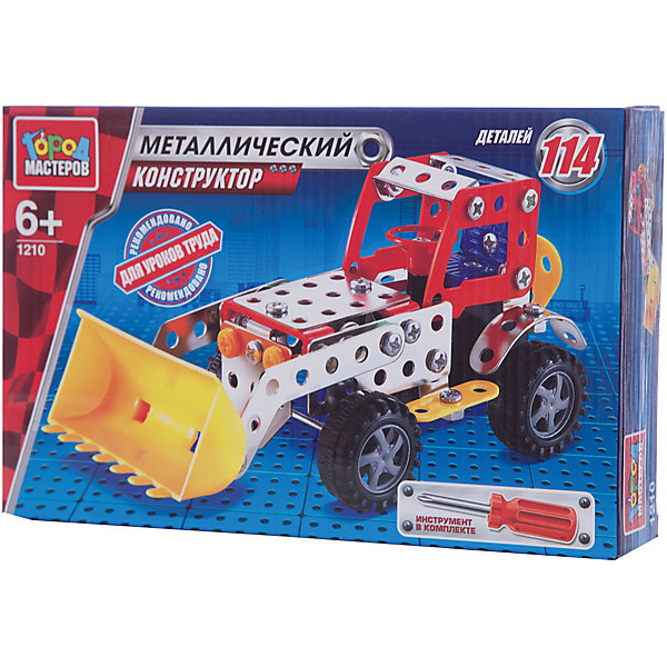 Металлический конструктор "Бульдозер" состоит из 114 деталей. Из них мальчику предлагается собрать модель строительного бульдозера, для удобства сборки в комплекте идёт отвёртка. Полученной игрушкой ребенок сможет играть, потому что у машинки подвижные колеса. Следуя приложенной схеме-инструкции, применив смекалку и терпение, ребенок увлекательно и полезно проведет время, развивая фантазию, глазомер и пространственное мышление. Предназначено для уроков труда и домашнего досуга. Рекомендовано детям старше 6-ти лет.
