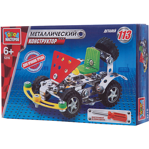 Металлический конструктор "Бульдозер" состоит из 114 деталей. Из них мальчику предлагается собрать модель строительного бульдозера, для удобства сборки в комплекте идёт отвёртка. Полученной игрушкой ребенок сможет играть, потому что у машинки подвижные колеса. Следуя приложенной схеме-инструкции, применив смекалку и терпение, ребенок увлекательно и полезно проведет время, развивая фантазию, глазомер и пространственное мышление. Предназначено для уроков труда и домашнего досуга. Рекомендовано детям старше 6-ти лет.