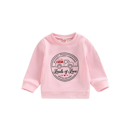 Zervatek Kid Child Valentine Day Pullover Tops Cartoon Truck Letter Print Long-Sleeved O-Neck Loose Sweatshirt
