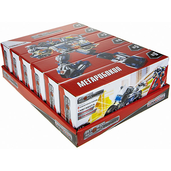 Игрушка изготовлена из прочных и безопасных материалов. В наборе 6 разных конструкторов, соединив которые, можно собрать большого робота.