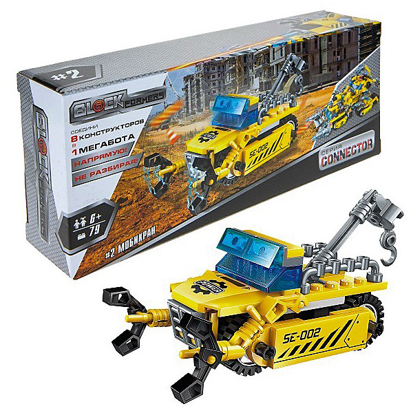 Игрушка изготовлена из прочных и безопасных материалов. В наборе 8 разных конструкторов, соединив которые, можно собрать большого робота.