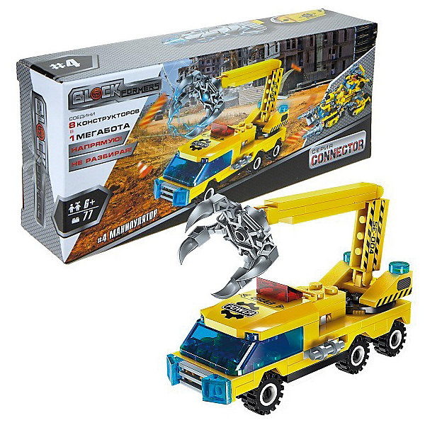 Игрушка изготовлена из прочных и безопасных материалов. В наборе 8 разных конструкторов, соединив которые, можно собрать большого робота.