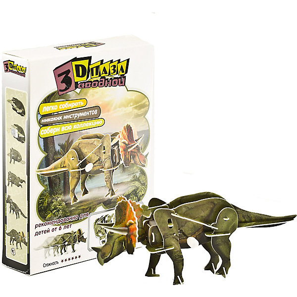 Заводной пазл «Трицератопс» - это очень интересная игрушка, которая создается своими руками. В наборе имеются детали для сборки трехмерного пазла и специальный заводной механизм. Соединив детали и механизм, ребенок получит интересную объемную фигурку динозавра трицератопса. Работает игрушка, благодаря механическому заводу. Динозавр может перебирать лапами, двигаясь вперед. Сборка пазла развивает многие важные качества ребенка, а с полученным результатом так интересно играть!