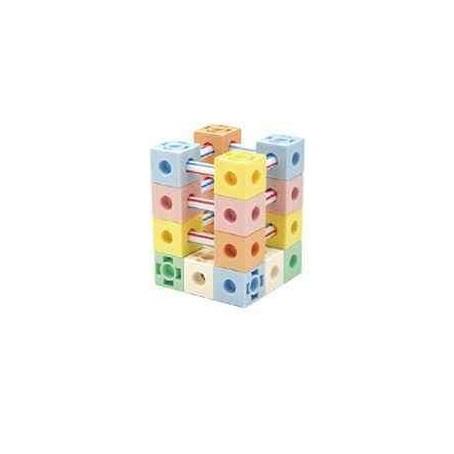 В набор входят кубики, призмы, шестеренки и штифты, из которых можно собрать 20 разных предметов. Конструктор способствует запоминанию цветов, форм и размеров. Уникальная конструкция элементов: они могут вращаться относительно друг друга при соединении.