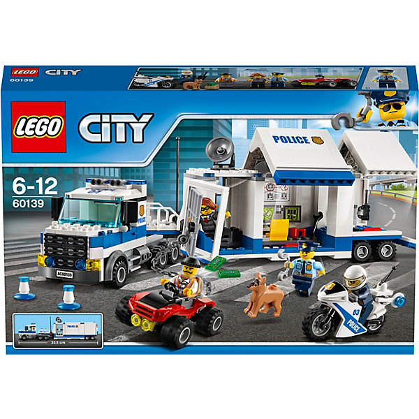 Легендарный конструктор LEGO (ЛЕГО) представляет серию «City» (Сити) в виде деталей жизни большого города, в котором есть абсолютно все. Серия делает игры еще более настоящими, благодаря отличным аксессуарам. Стражи закона Лего Сити всегда готовы прийти на помощь жителям города. С помощью мобильного центра со спутниковой связью полицейская команда отслеживала двух опасных преступников. Полицейские сложили улики на компьютере и доске с доказательствами и поймали одну преступницу. Не успели патрульные допить свой кофе, как к модулю подъехал квадрацикл с цепью и крюком и вырвал дверь тюрьмы модуля. Ловкий полицейский сразу же надел свой шлем и кинулся в погоню на своем полицейском скоростном мотоцикле с голубой сигнальной лампой. Фигурки этого набора отлично детализированы и качественно прорисованы. В набор входят сразу три транспортных средства: сам модуль с возможностью отсоединения патрульного блока, квадрацикл и скоростной мотоцикл. Захватывающие аксессуары в виде розыскной аппаратуры, рации, досок для расследования, а также наручников, спутниковой тарелки, рюкзака, в котором лежат деньги, и чашки добавляют реалистичности этому большойму полицейскому набору. Помоги полицейским добиться справедливости. Моделируй разные истории и ситуации в Лего Сити! Конструктор LEGO City 60139: Мобильный командный центр можно купить в нашем интернет-магазине.
