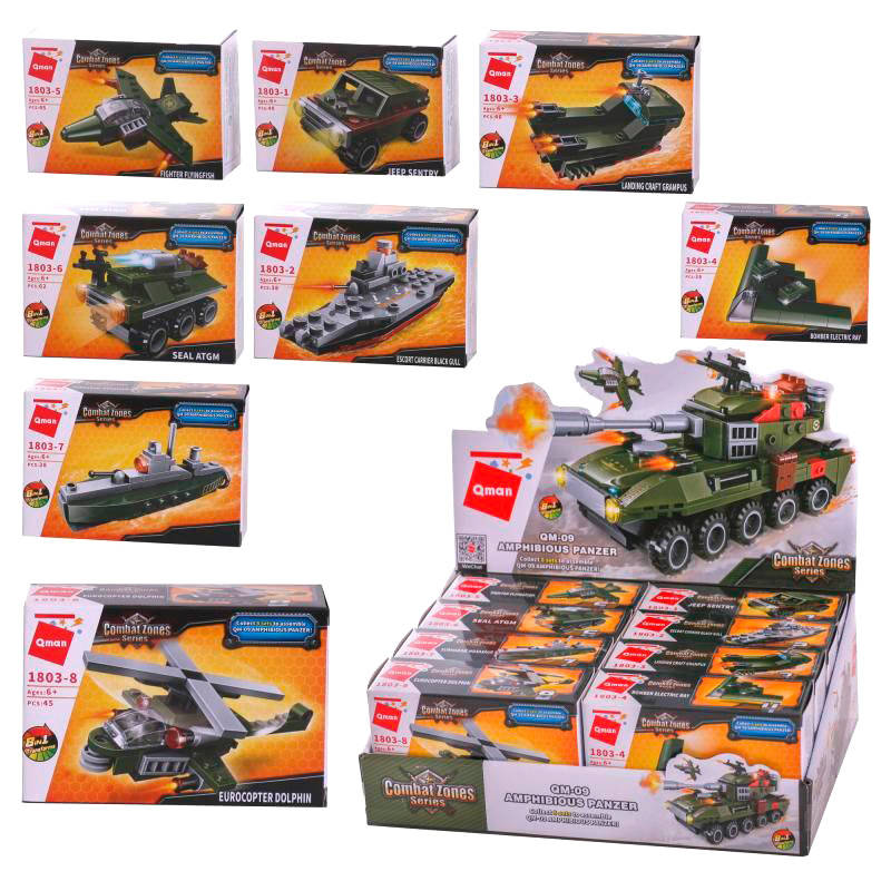 Конструктор "Qman" 1803 военная серия, 38-62 дет., 8 видов