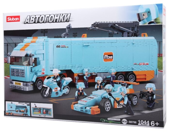 Конструктор SLUBAN "Кольцевые гонки: Заезд с трейлером", деталей: 1044 (M38-B0766), "Кольцевые гонки: Заезд с трейлером"