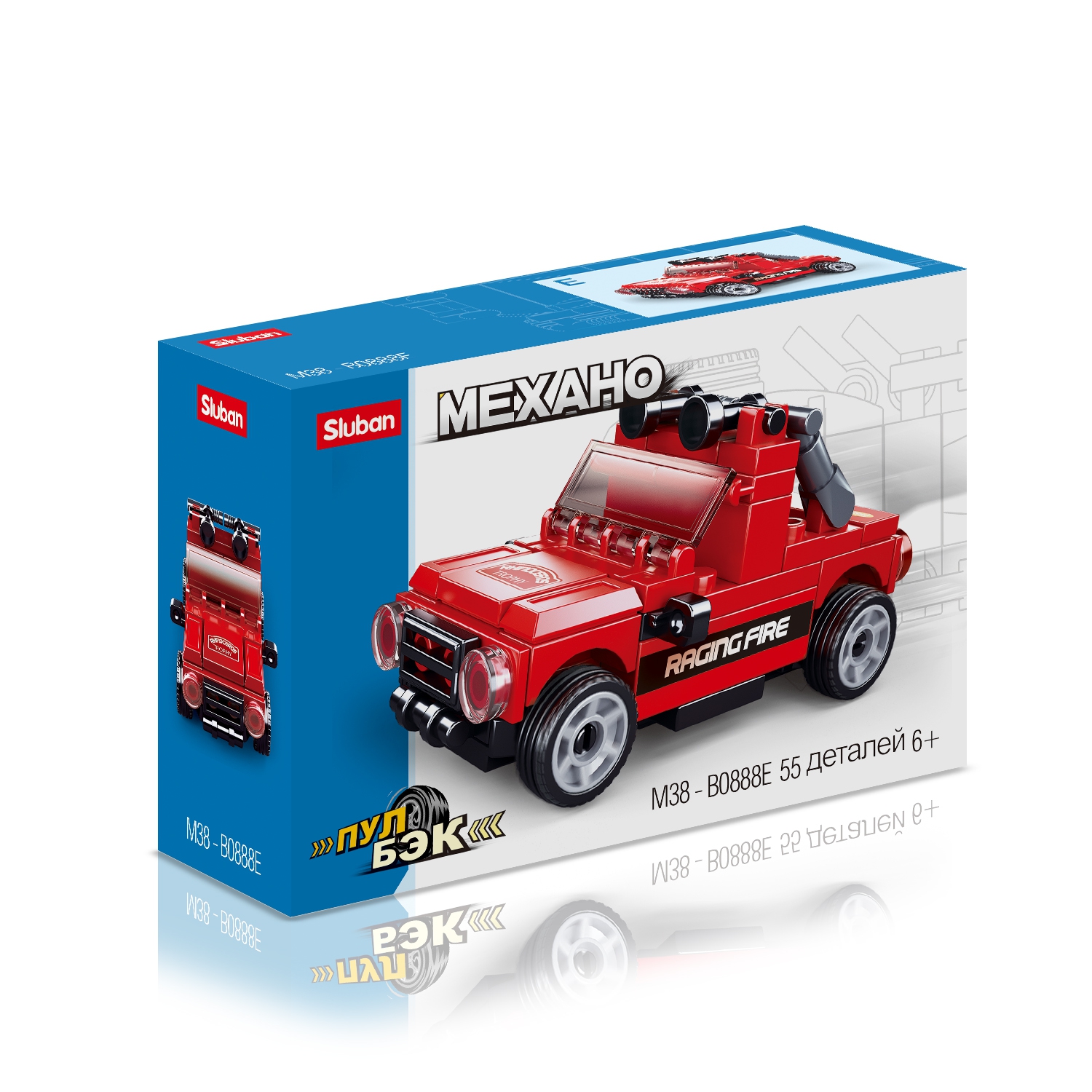 Конструктор SLUBAN "Пуллбэк: Пожарный внедорожник", деталей: 55 (M38-B0888E), "Пуллбэк: Пожарный внедорожник"