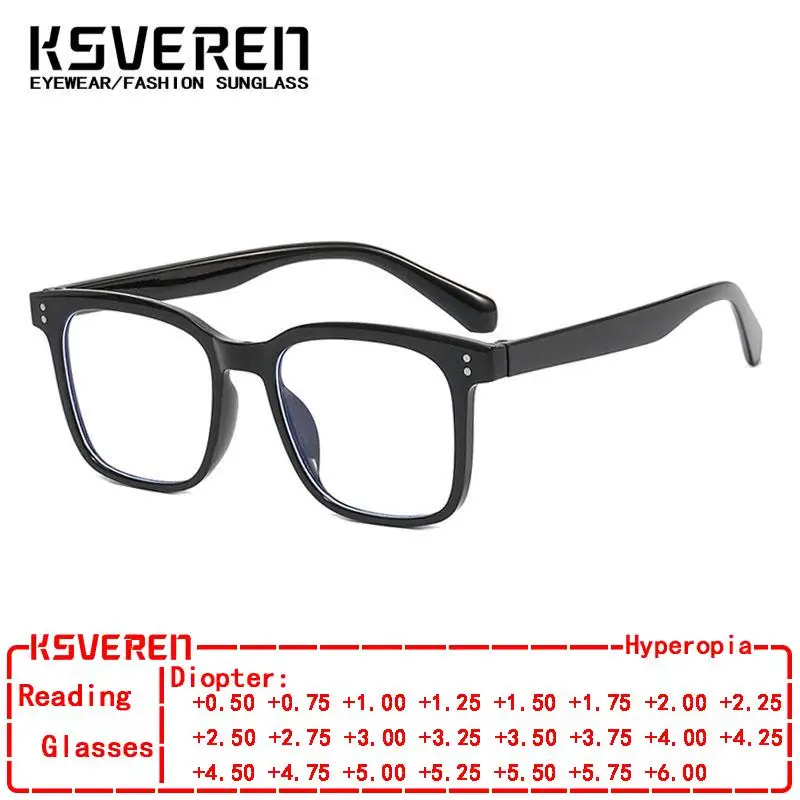 Fashion Square Blue Light Blocking Reading Glasses Large Frame Presbyopia Readers Optical Prescription Eyewear Frame For Women