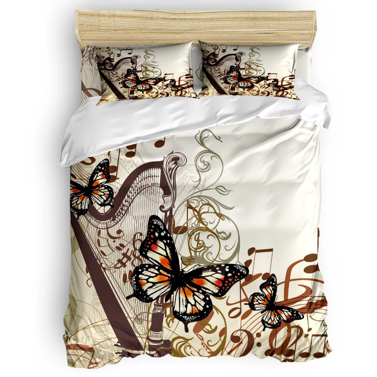 Music Butterfly Harp Beige Design Intent Duvet Cover Set 2/3/4pcs Bedding Set Bed Sheet Pillowcases Cover Set