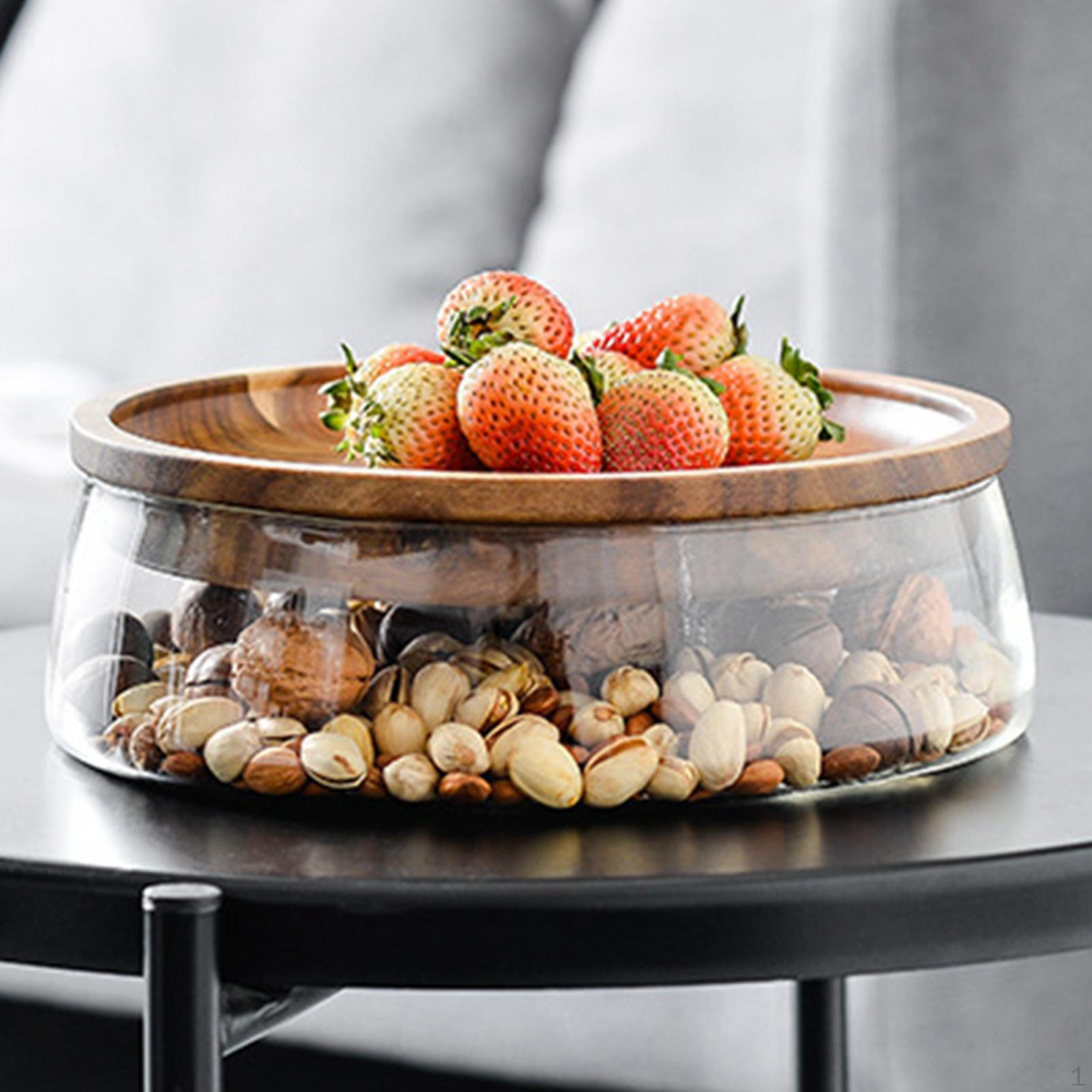 Контейнер для конфет и орехов Тарелка для сухофруктов с крышкой в японском стиле Многофункциональная круглая деревянная тарелка 23cmx8cm