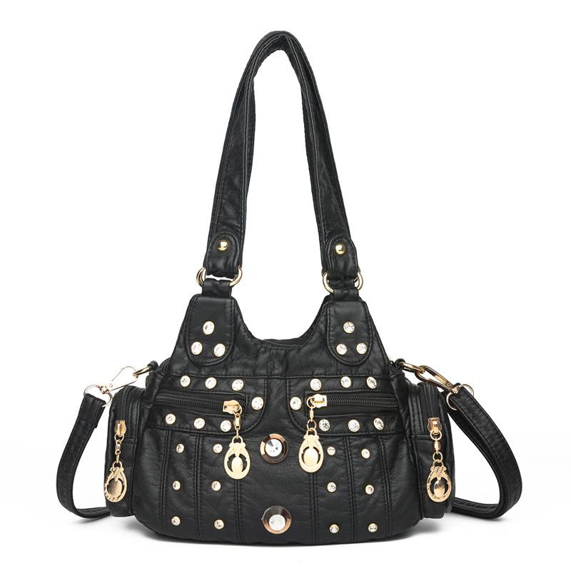 Контрастная женская сумка через плечо в стиле ретро с цветными стразами и заклепками, большая вместимость, ручная сумка-тоут, застежка-молния против кражи сзади