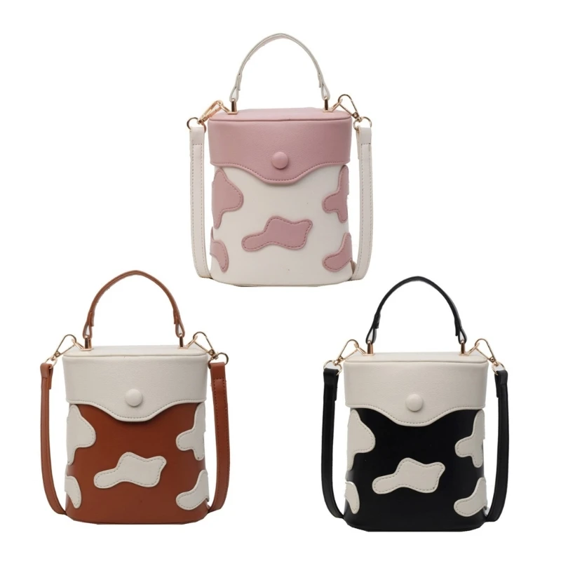 Контрастного цвета молочный узор из искусственной кожи Сумка-ведро Женская сумка через плечо Кошелек