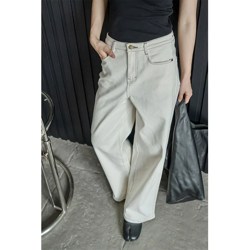 Контрастные турецкие хлопковые белые женские джинсы с широкими штанинами