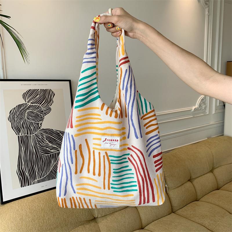 Контрастные цветные линии Большая вместительная холщовая сумка Новая модная летняя женская сумка для покупок Сумка через плечо из ткани Сумка-жилет