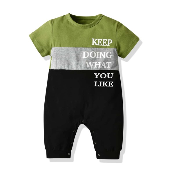 Многоцветный Повседневный Короткий рукав Хлопок Контрастный цвет Лозунг футболка Легкий Эластичный Весна/Лето Боди для малышей, size features are:Bust: ,Length: долго ,Sleeve Length:Короткий рукав