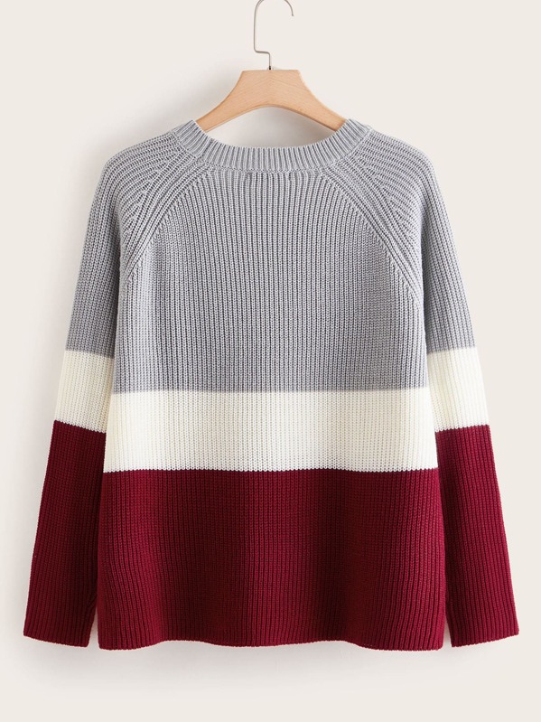Контрастный свитер размера плюс с рукавом-регланом, Многихцветные