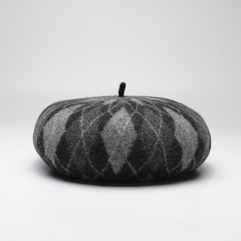 Контрастный шерстяной берет, модная и повседневная теплая утолщенная клетчатая универсальная шляпа художника для осени и зимы One Size чёрный