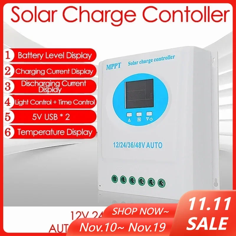 MPPT Контроллер заряда солнечной батареи 120/150A Dual USB 12 В 24 В 36 В 48 В Автоматическое зарядное устройство панели солнечных батарей Регулятор свинцово-кислотной/литиевой батареи