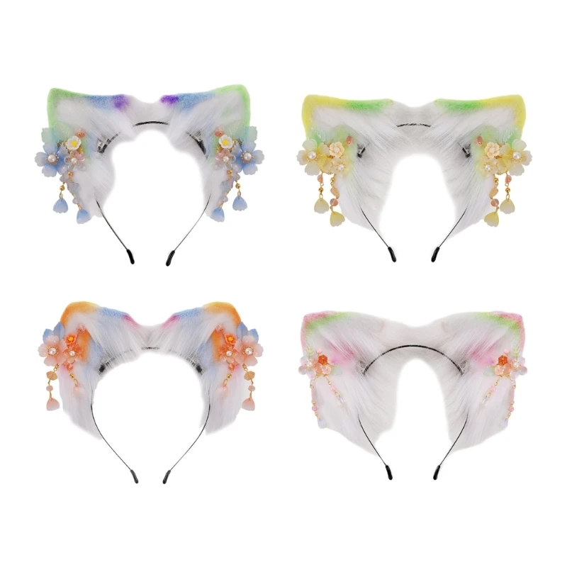 2XPC Lovely Headband Kitten Ear Shape Flower Hair Hoop Sweet Hairband for Woman Girls