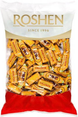 Конфеты Рошен Коровка неглазированные конфеты , помадка из натурального молока и сливочного масла в молочном корпусе .
