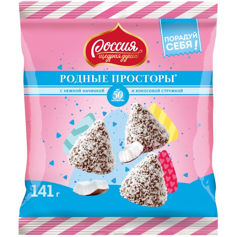 Конфеты шоколадные Россия-Щедрая душа! Родные просторы с кокосовой стружкой 141 г