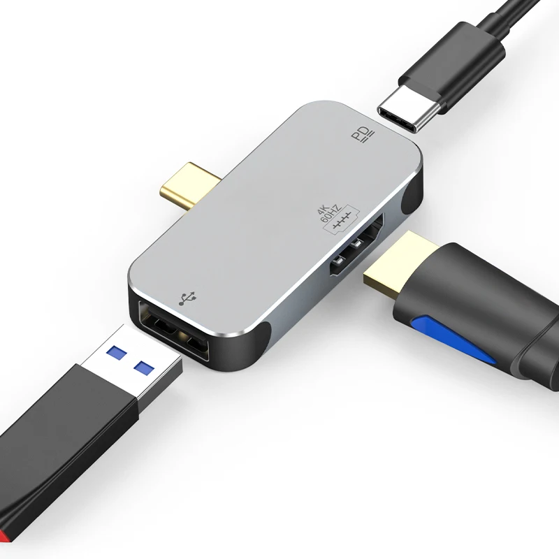 Концентратор 3 в 1 с портом USB C на HDMI для Macbook Pro Air HUAWEI Xiaomi, адаптер PD для быстрой зарядки, конвертер USB 4K 60 Гц