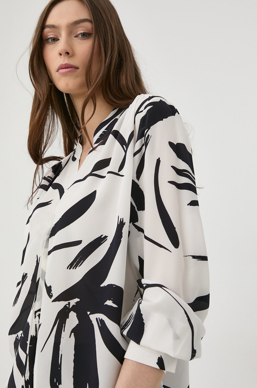 Копринена риза BOSS дамска в бяло със стандартна кройка с права яка, Бял
