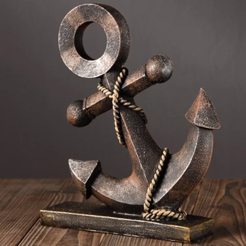 Корабль продаж Ретро Якорь статуя Болтовая проволока древесина Смола ремесло кафе домашнее украшение L3046