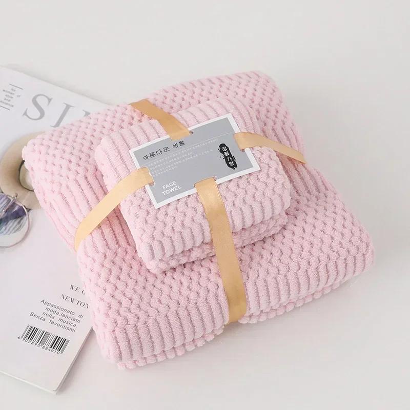 Коралловый бархатный пляжный комплект полотенец для взрослых, впитывающий 100% хлопок, мягкий флис, полотенце для волос, плавания, лица, микрофибра, высокое качество розовый
