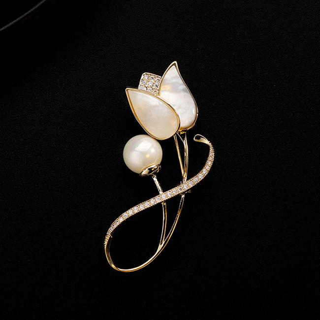 Корейская брошь-тюльпан, женская элегантная булавка с жемчугом, корейская модная брошь-цветок, аксессуары для пальто и костюма