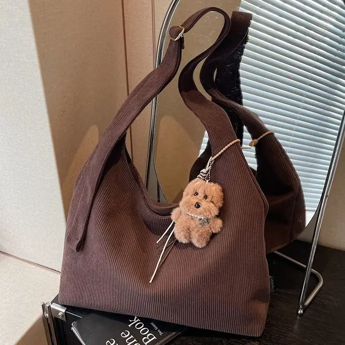 Корейская вельветовая однотонная женская сумка-тоут с широким ремешком, большая вместительная простая сумка на плечо, женская повседневная универсальная пригородная сумка через плечо