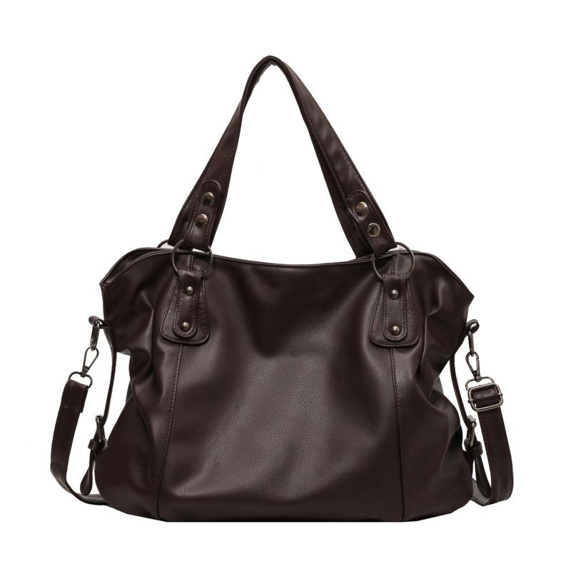 Корейская версия Большая вместимость Модная сумка-тоут Мягкая кожа ПУ Новая Ретро Женская сумка ручная через плечо Кроссбоди Кошелек Женская сумка 40cmX27cmX15cm кофейный