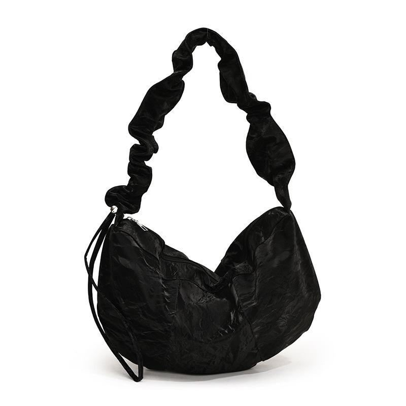 Корейская версия женская сумка сумка-мессенджер для поездок на работу 2024 осень новая трендовая сумка подмышку плиссированная ручная модная сумка на плечо чёрный