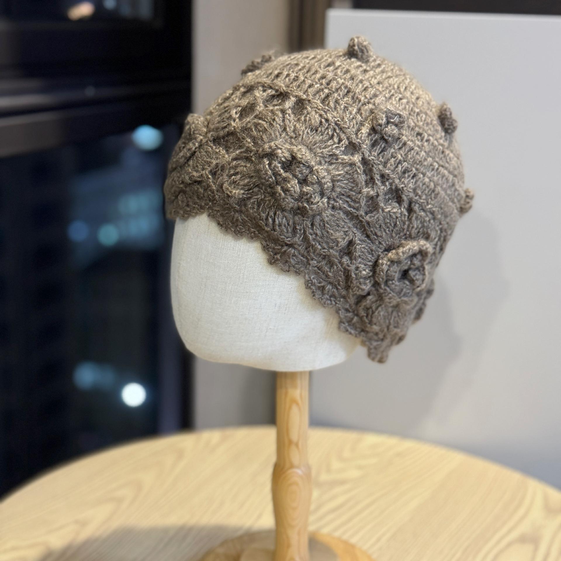 Корейская версия милой кружевной шляпы-банданы с полым цветком для женщин, нишевая литературная модная универсальная вязаная крючком шапка ручной работы one size