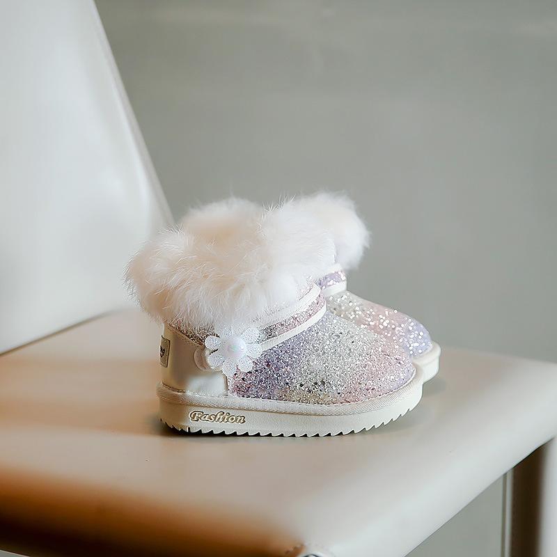 Корейская версия модных детских зимних сапог, хлопковая обувь для девочек, зимние новые бархатные утолщенные водонепроницаемые нескользящие кожаные сапоги, короткие сапоги 27 yards inner length 16cm бежевый