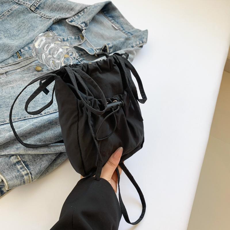 Корейская версия новой женской сумки 2024 года, простая и модная летняя ретро-повседневная сумка через плечо, сумка-мессенджер, сумка-ведро чёрный