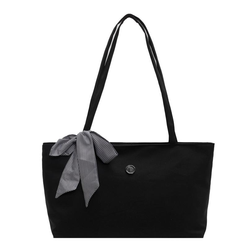 Корейская версия популярной сумки-тоут из шелкового шарфа в зарубежном стиле, сумка-молния для поездок на работу, не боящаяся ветра, модная универсальная студенческая сумка через плечо чёрный