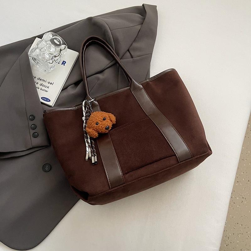 Корейская версия 2024 года, новая женская сумка в стиле ретро из замши, большая вместительная сумка, простая модная большая сумка Without pendant
