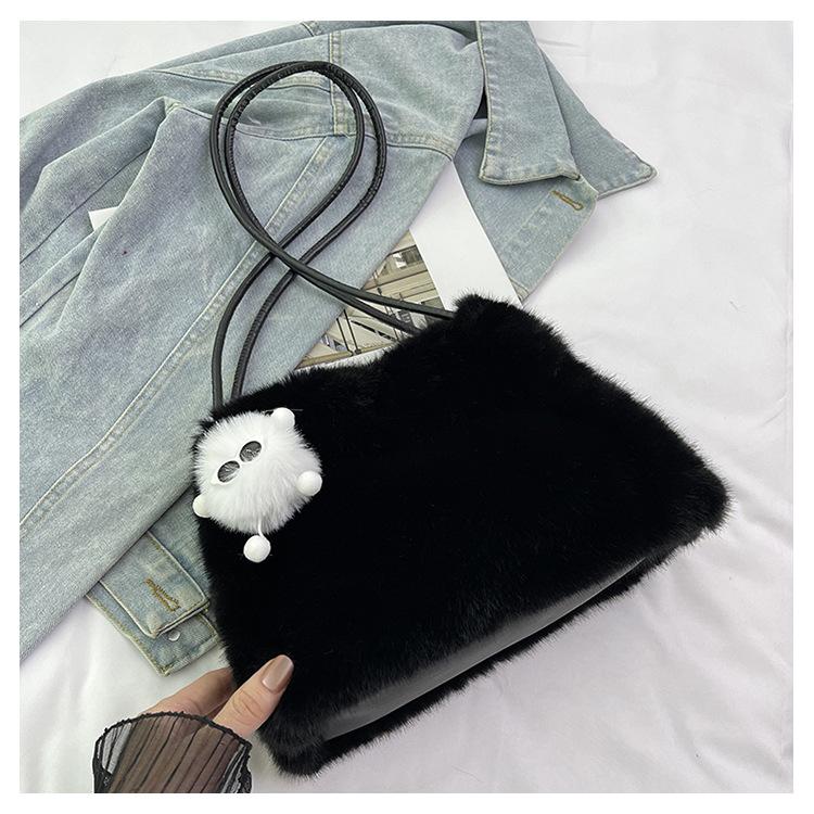Корейская версия ins нишевый дизайн плюшевая сумка женская 2025 новая в иностранном стиле большая вместимость сумка-тоут на одно плечо сумка через плечо чёрный
