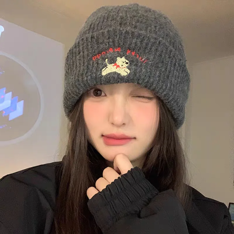 Корейская вязаная шерстяная шапка с милым щенком, детская осень и зима 2024, новая универсальная маленькая теплая лысая шапка для лица