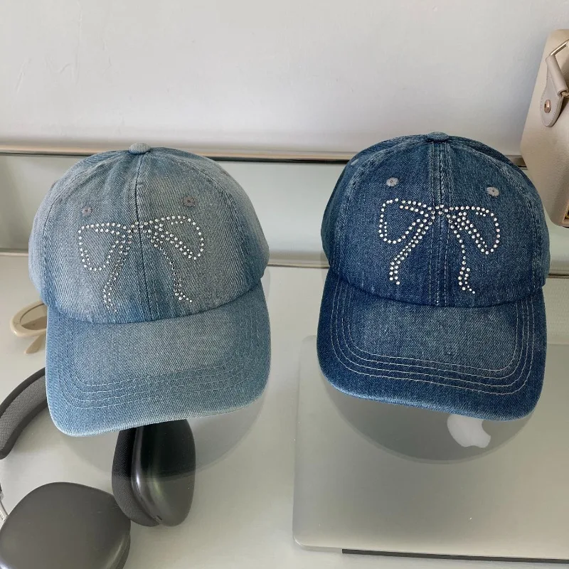 Корейская дизайнерская стандартная джинсовая бейсболка с бантом, весенне-летняя универсальная бейсболка с козырьком для девушек