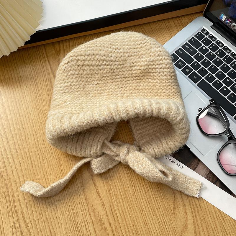 Корейская женская шапка-балаклава, зимняя теплая вязаная защитная шапка для ушей, однотонная женская шапка-пуловер для девочек, чепчик