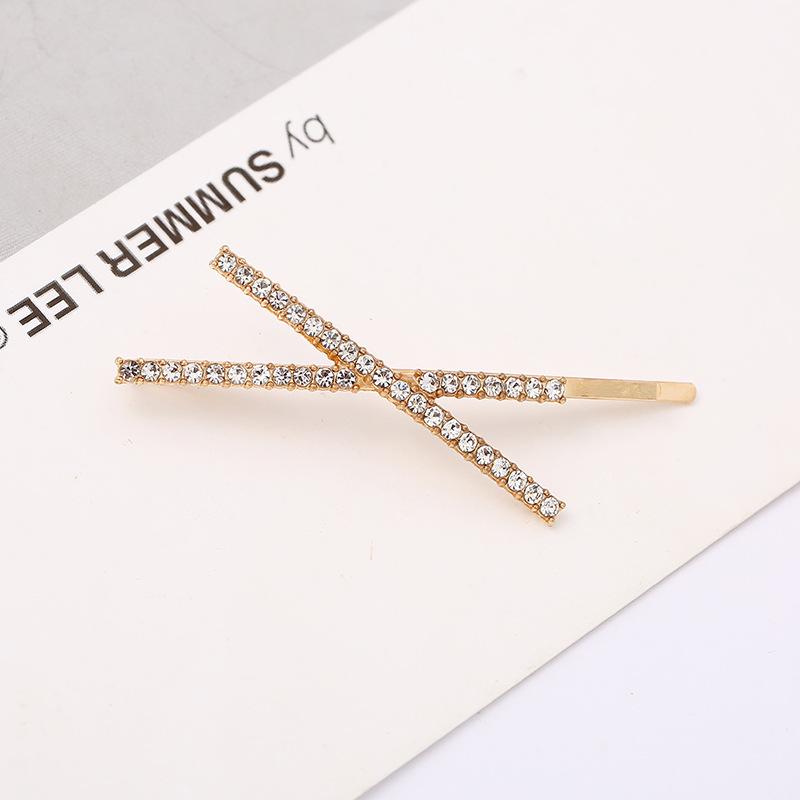 Корейская золотая заколка для волос с бриллиантами в форме буквы X - заколка для волос в стиле Sweet Temperament золотой
