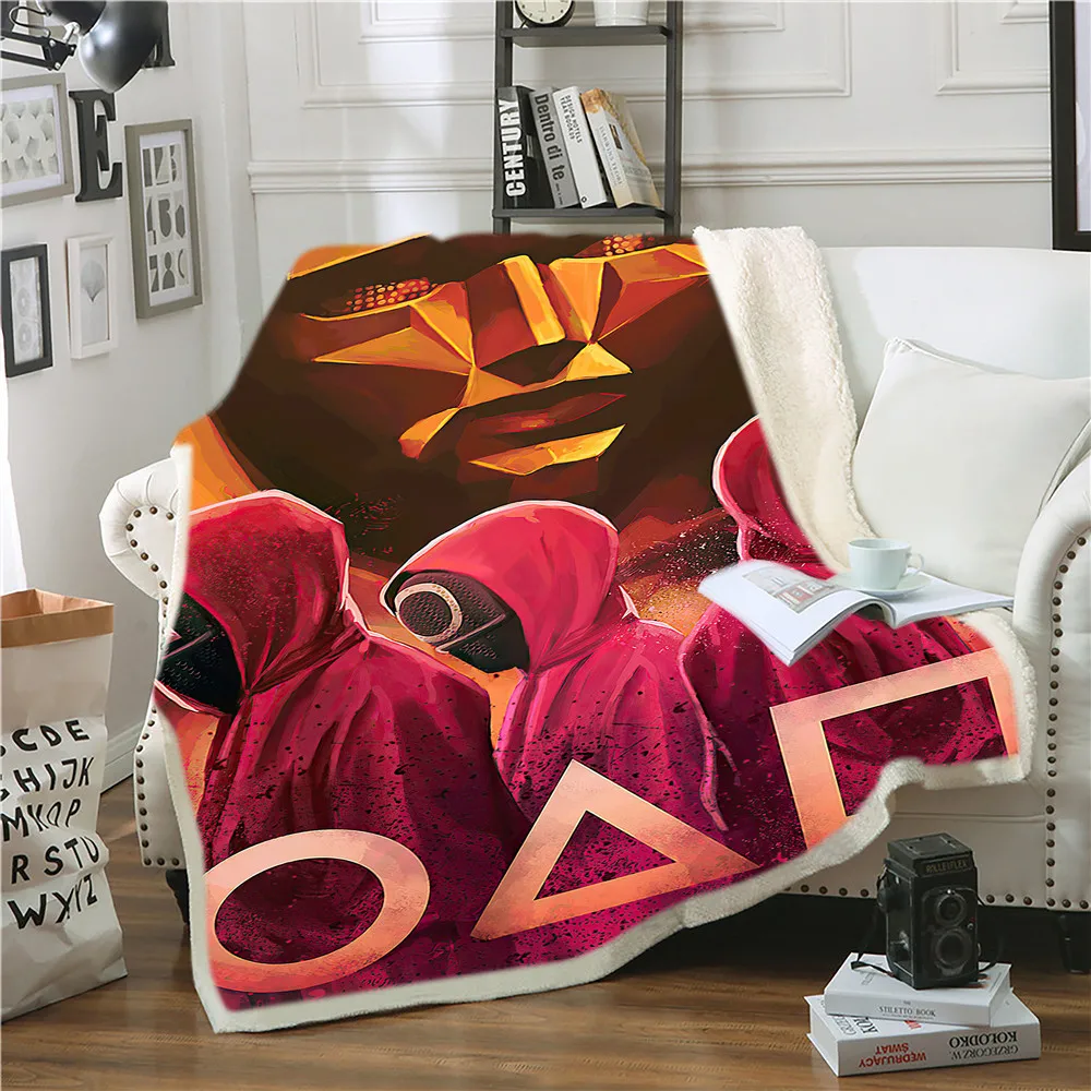 Корейская игра кальмар, плюшевое одеяло с 3D принтом, 6 дюймов, шерпа, флис, теплый подарок для детей и взрослых